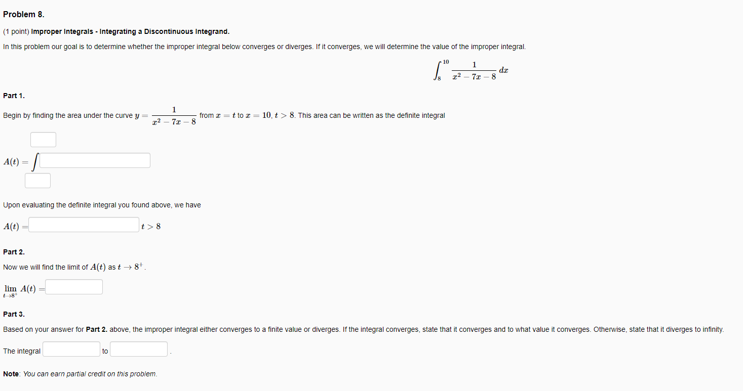 Solved Problem 8 1 Point Improper Integrals Integrating Chegg Com